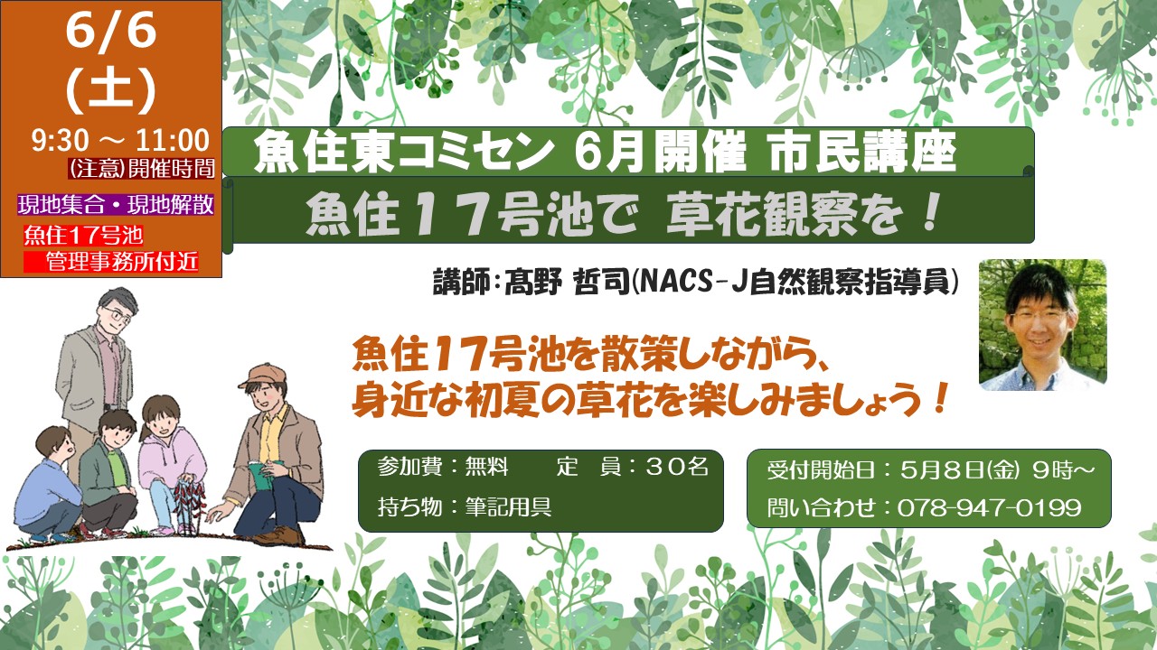 【当日】17号池みんな公園(明石市魚住町清水字猫谷1他)・【荒天時】明石市立魚住東コミュニティ・センター(明石市魚住町金ケ崎1687-14 魚住東中学校内)
