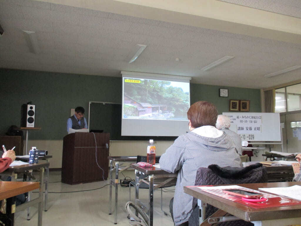2月27日(金)市民・ライト共通講座「続・みちのく旅紀行②秋田・山形・宮城・福島」を開催しました 投稿日 2026年2月27日 著者 eigashimacom カテゴリー 未分類 今日は私エリアマネージャーの安藤が講師を務めて、市民・ライト共通講座「続・みちのく旅紀行②秋田・山形・宮城・福島」を開催しました。今日は旅の後半の行程について観光、温泉、宿、グルメの情報などを交えて説明しました。参加されたみなさん、とても熱心にお聴きくださり、講座を開いた甲斐がありました。この2週間の話をお聴きになって、少しでも東北に興味をお持ちいただければ幸いです。ありがとうございました(*^^*)。 この記事を書いた人 eigashimacom 記事一覧