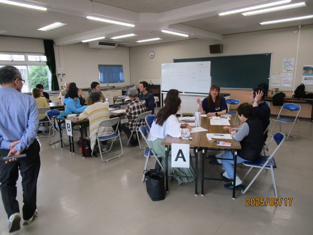 「やさしい日本語」という言葉を初めて聞いた方もたくさんいましたが、「やさしい日本語」ができた経緯などを説明していただき、「やさしい日本語」に変換することに挑戦しました。グループでの話し合いも活発で和気あいあいとした雰囲気の中、すすめていくことができました。そして、最後は実際に外国人の方と、今日学んだ「やさしい日本語」を使っておしゃべりをしました。少し緊張感もありましたが、すぐに打ち解けて楽しい時間を過ごすことができました。