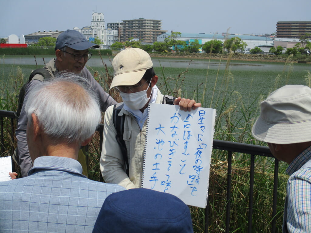 5月23日(金)ライトコース講座「大池の草花を楽しむ(春編)」を開催しました 投稿日 2025年5月23日 著者 eigashimacom カテゴリー 未分類 今日は髙野哲司先生を講師にお招きし、ライトコース講座「大池の草花を楽しむ(春編)」を開催しました。さわやかな風が心地よい初夏の大池では、たくさんの草花を観察することができました。いつもは何気なく歩いている道も、よく見れば実にたくさんの種類の植物が生命を主張しています。髙野先生はその中でも明石近辺では大池にしか見られないような植物を丁寧に説明してくださいます。今日も受講生のみなさんは興味津々に先生のお話を聴いておられました。次回は晩秋の大池を巡ります。乞う!ご期待! この記事を書いた人 eigashimacom 記事一覧