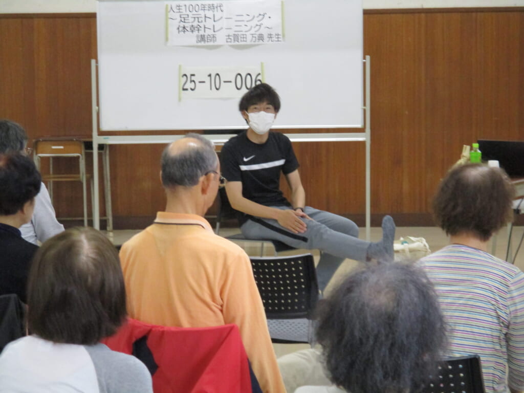 5月29日(木) ライトコース講座「人生100年時代~足元トレーニング・体幹トレーニング」を開催しました 投稿日 2025年5月29日 更新日 2025年6月4日 著者 eigashimacom カテゴリー 未分類 今日は古賀田万典先生を講師にお招きし、ライトコース講座「人生100年時代~足元トレーニング・体幹トレーニング」を開催しました。足や脚を健康に保つことが健康寿命を延ばすことにつながるといったお話しから、足のメカニズムやストレッチの方法まで、幅広く教えていただきました。今日教えていただいたストレッチや足裏マッサージを日々かかさず続けていきたいと思います。 「自宅での運動資料」を使って、ぜひご自宅でも続けましょう! この記事を書いた人 eigashimacom 記事一覧