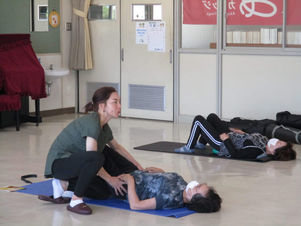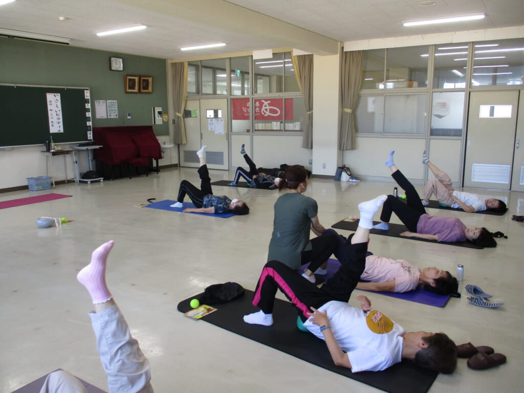 今日は林えみ先生を講師にお招きし、市民講座「やさしいピラティス(3回シリーズの第2回)」を開催しました。今回は呼吸法と股関節をメインに使いながらやさしいピラティスの動きを入れ皆さんリラックスして体を動かしていました。特に股関節を動かしながらのピラティスの動きは普段から意識して動かしていないので、先生に教わりながら正しい動きを教えて頂きました。