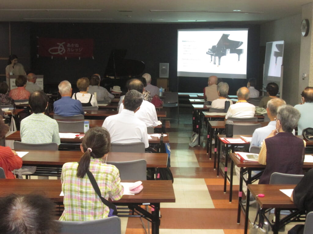 地元高丘ご出身のピアニスト坂本彩先生に貴重な海外での実体験も交えながら、「フルコンサートグランドピアノ」の詳しいお話を聞かせていただきました。講義の後半では、ピアノ演奏もしていただき、繊細さと表現力と迫力、圧巻のパフォーマンスで受講者の皆様から感動の声。心を打たれる素晴らしい演奏でした。