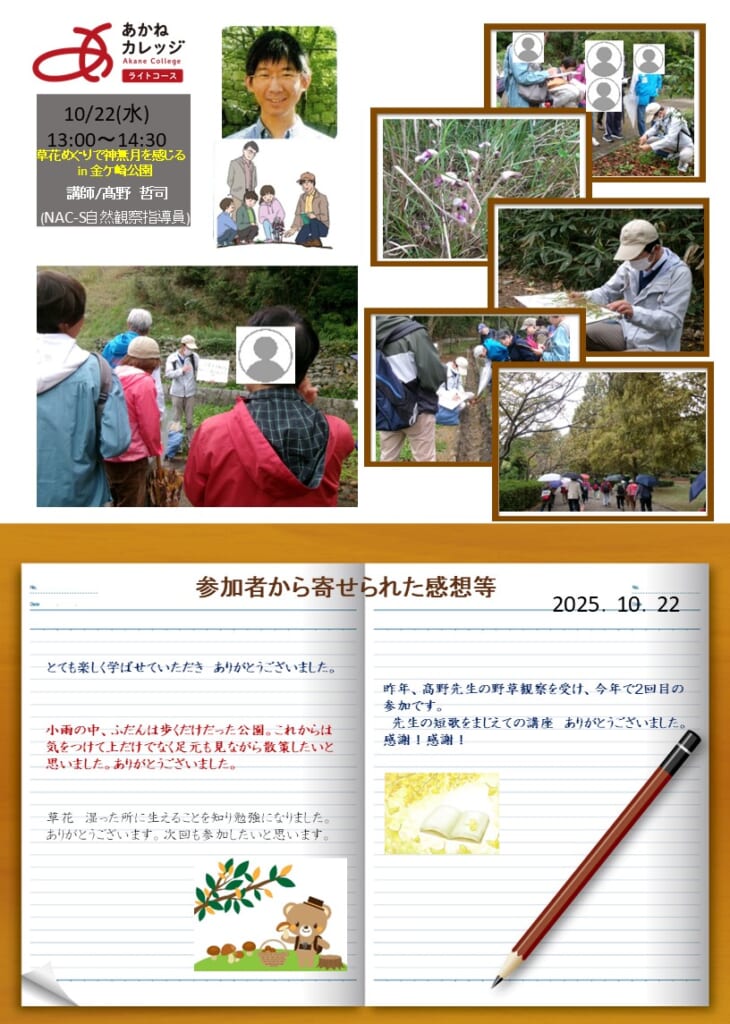 あかねカレッジライトコース講座「草花めぐりで神無月を感じる in 金ヶ崎公園」