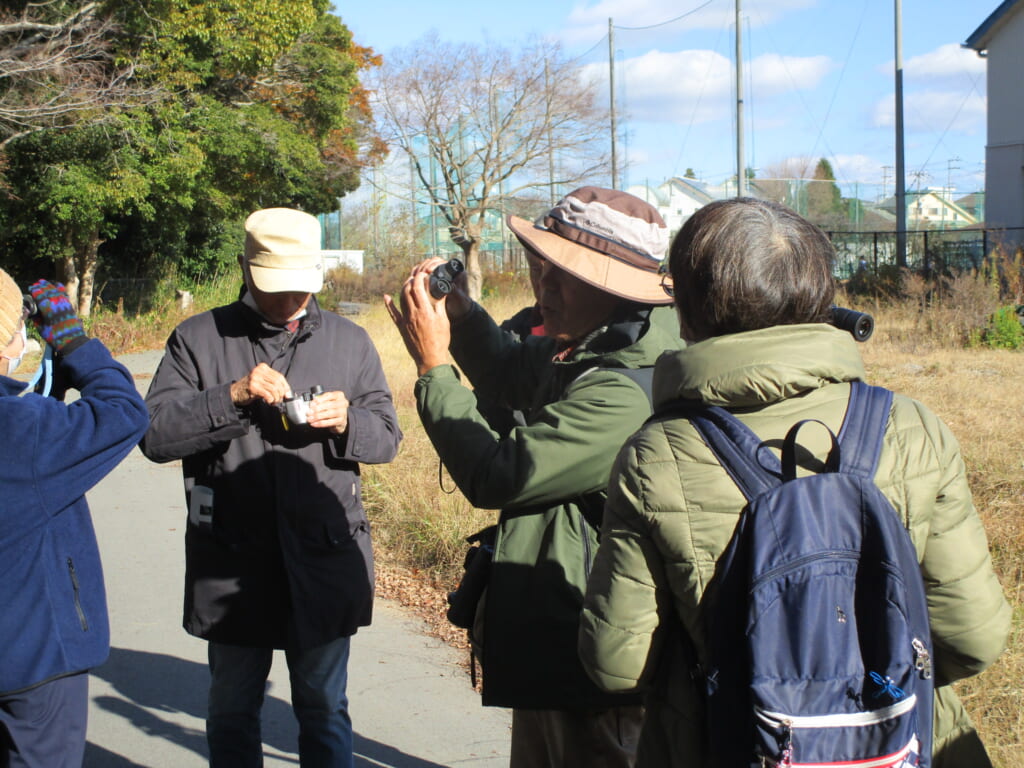 その日は風もなく温かさを感じるような日で、明石公園でバードウォッチングをするには最高の日でした。 講師の先生から、双眼鏡の使い方やこの時期に明石公園にいる