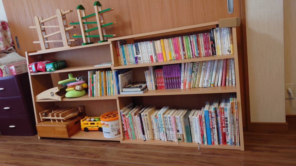 小さな月齢のこどもでも楽しめる絵本を置いています。親子でゆっくりと楽しんでください。
