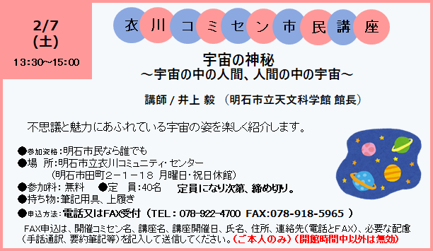 衣川コミセン市民講座「宇宙の神秘 ~宇宙の中の人…