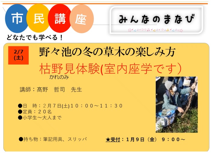 野々池の冬の草木の楽しみ方(室内座学:枯野見の体験…