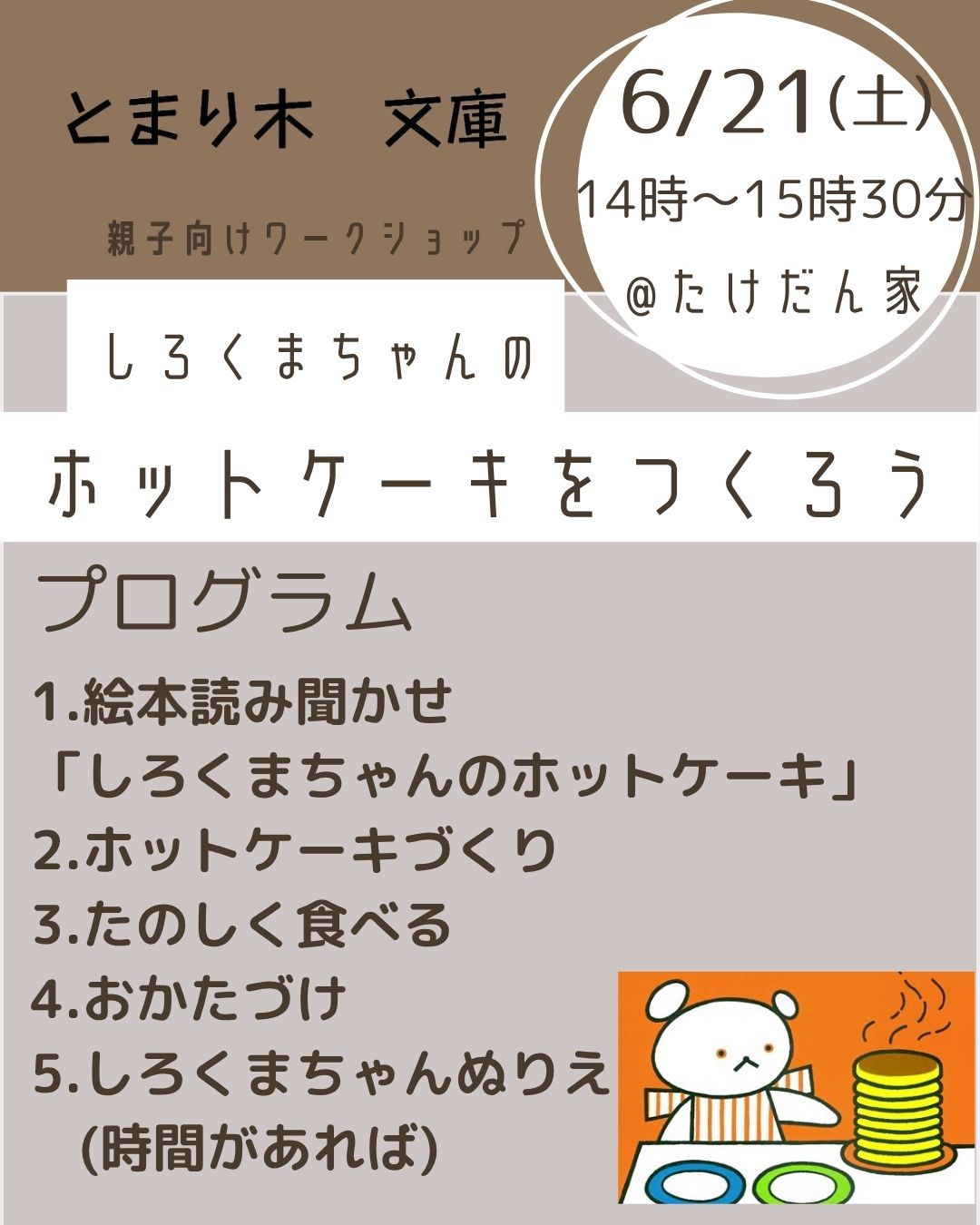 絵本しろくまちゃんのホットケーキを絵本通りに作ってみませんか?