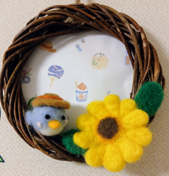 今回は夏をイメージした飾り、ひまわりと麦わら帽子をかぶった小鳥さんを作ります。