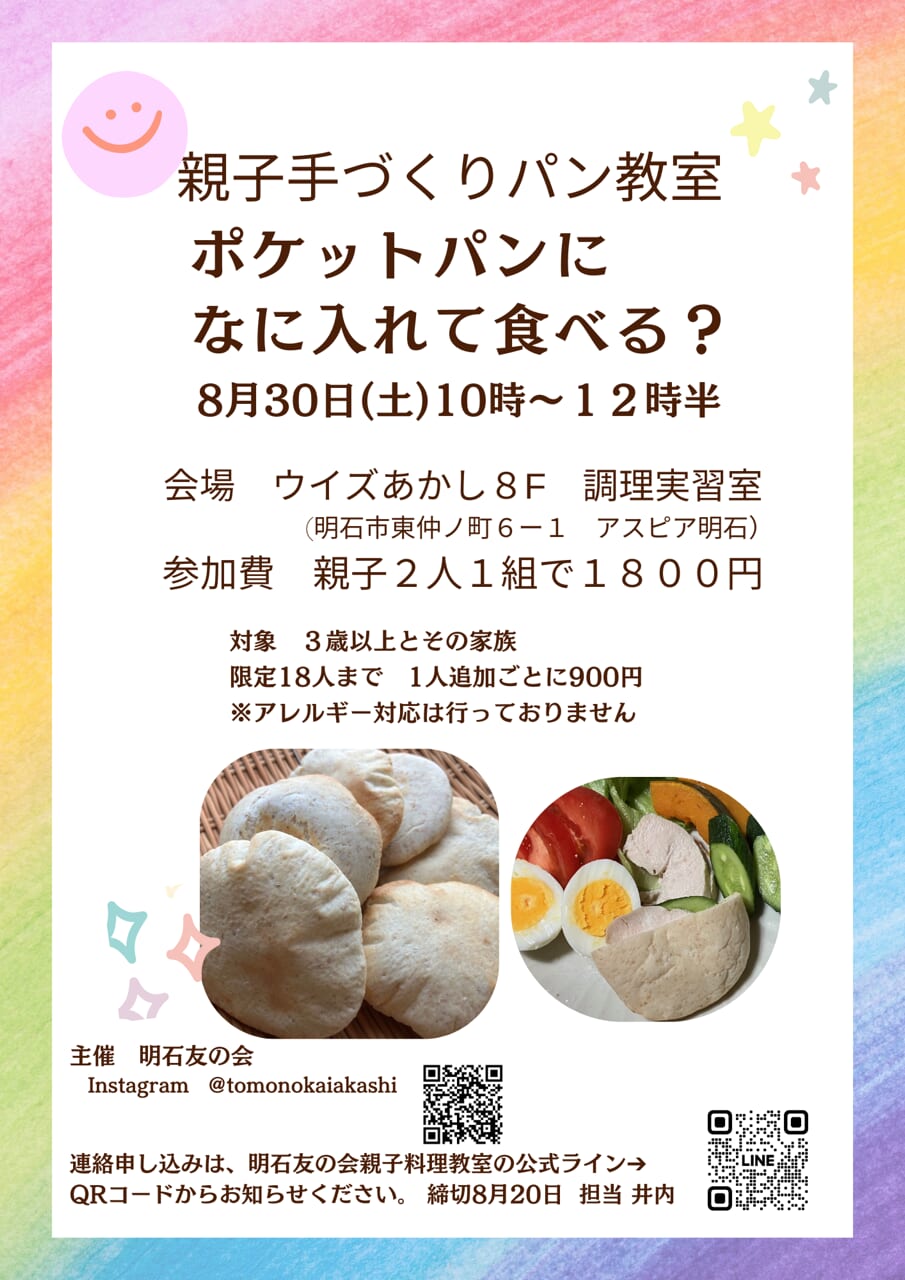 ぷっくりふくらんだパン。半分に切るとポケットみたいなかたち。好きなものを入れて食べましょう。 - 募集定員及び参加対象