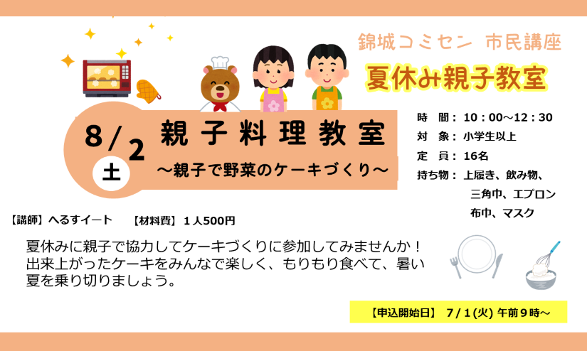 - 夏休みに親子で協力してケーキ作りに挑戦してみませんか!