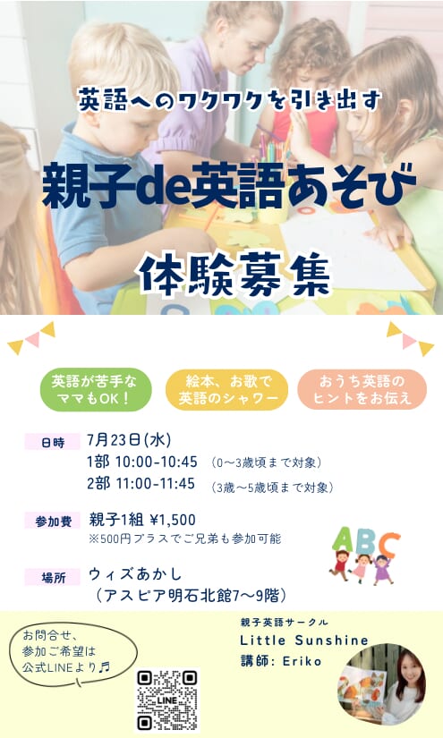 その日だけで終わらない、おうちでも“続けたくなる”声かけやおうち英語のアイデアもたっぷりお伝えします。