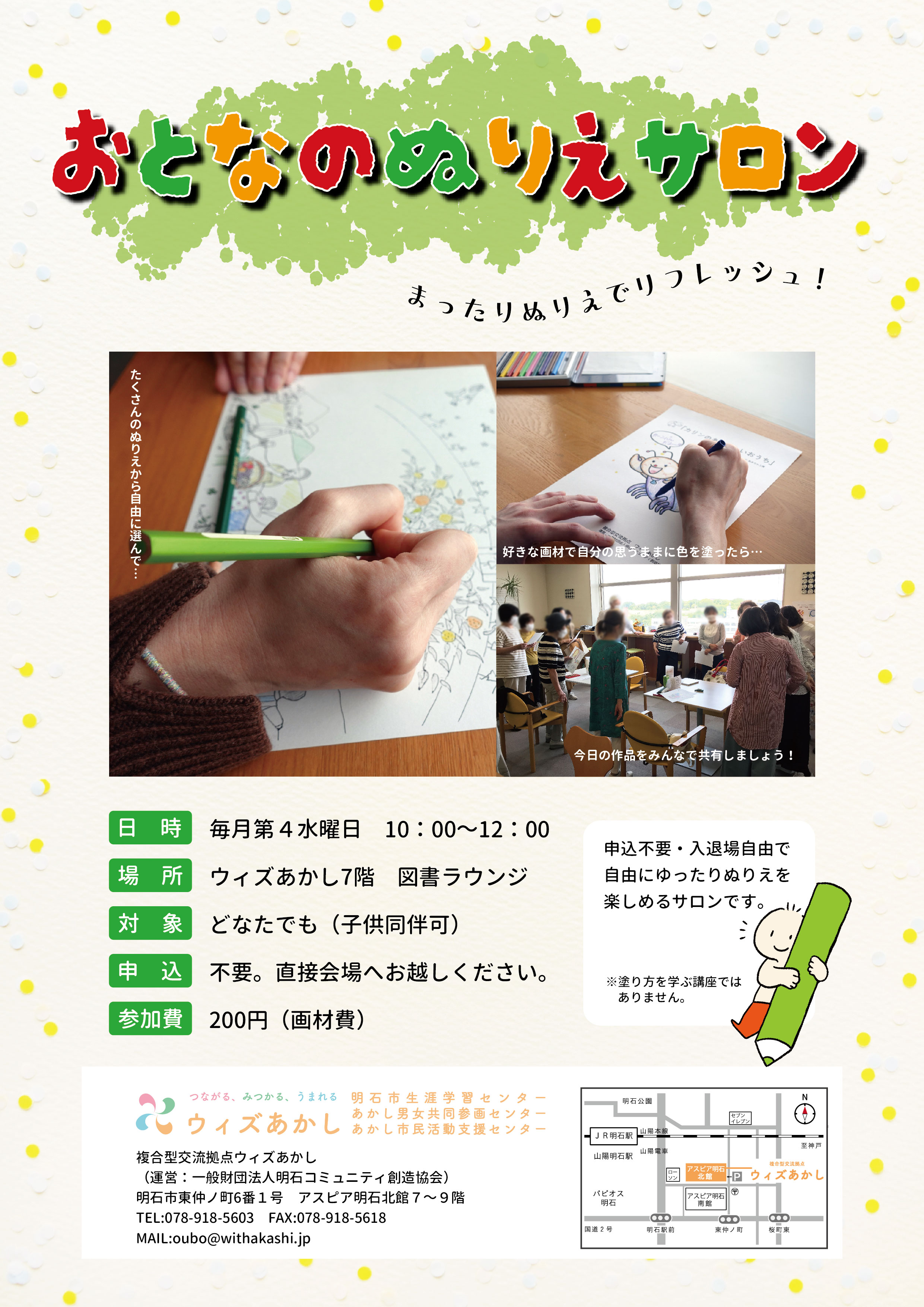 - 複合型交流拠点ウィズあかし TEL:078-918-5600 FAX:078-918-5618 e-mail:oubo@withakashi.jp