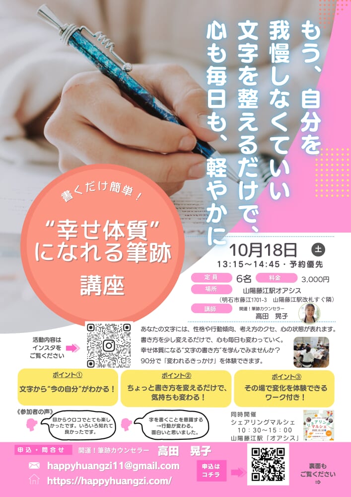 幸せ体質になりたい方、筆跡診断に興味がある方 - 参加費