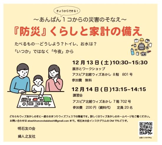- 複合型交流拠点ウィズあかし 12/13(土) ウィズあかし8F 801号 12/14(日) ウィズあかし7F 702号