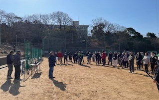 R7年3月9日、朝霧校区まちづくり協議会加入各種団体の親睦・交流を深めるため、グラウンドゴルフ大会が朝霧中学校の運動場で開催されました。