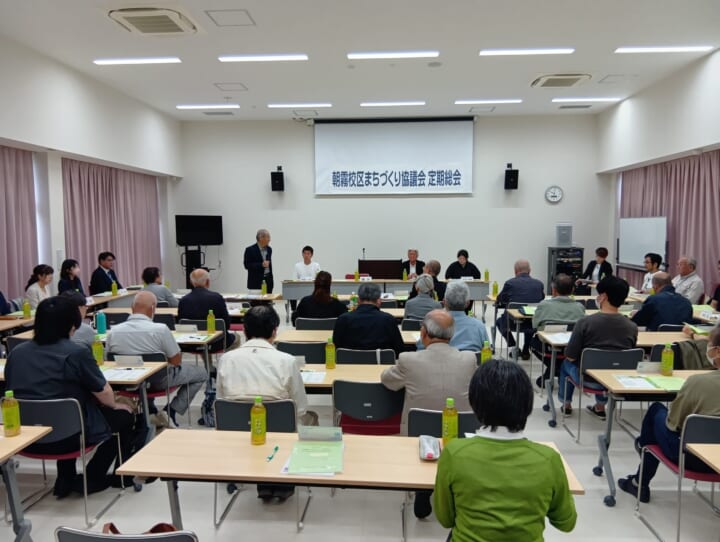 R7年3月9日、朝霧校区まちづくり協議会加入各種団体の親睦・交流を深めるため、グラウンドゴルフ大会が朝霧中学校の運動場で開催されました。