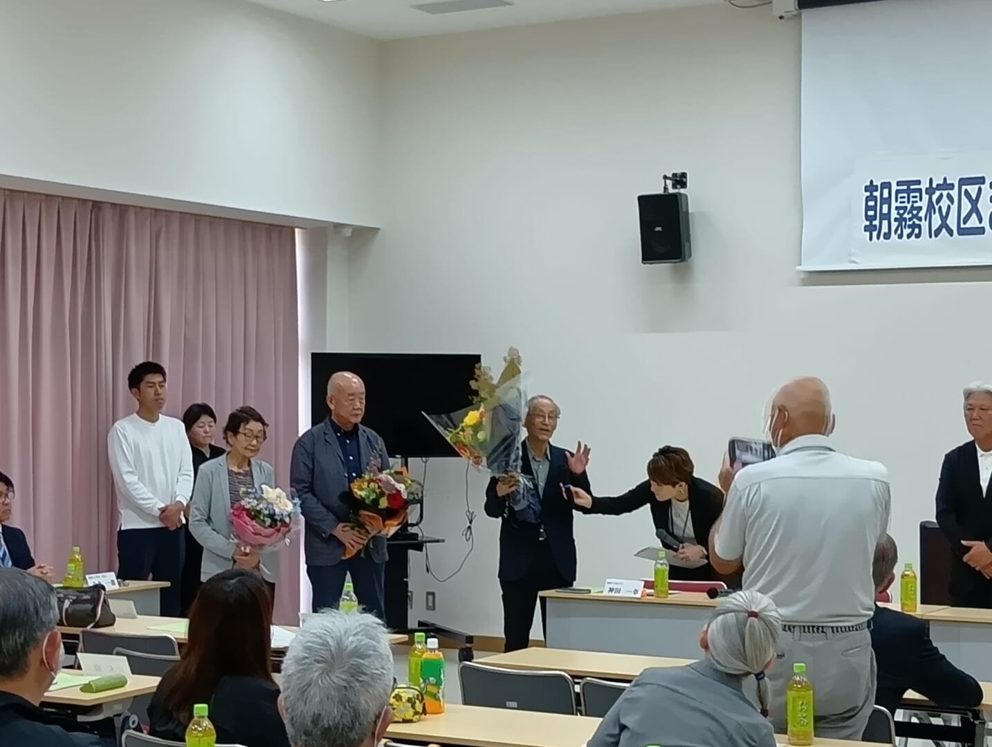 今年度は、会長をはじめ3名が三役を退任され、閉会後に感謝の意を込めて花束が贈られました。