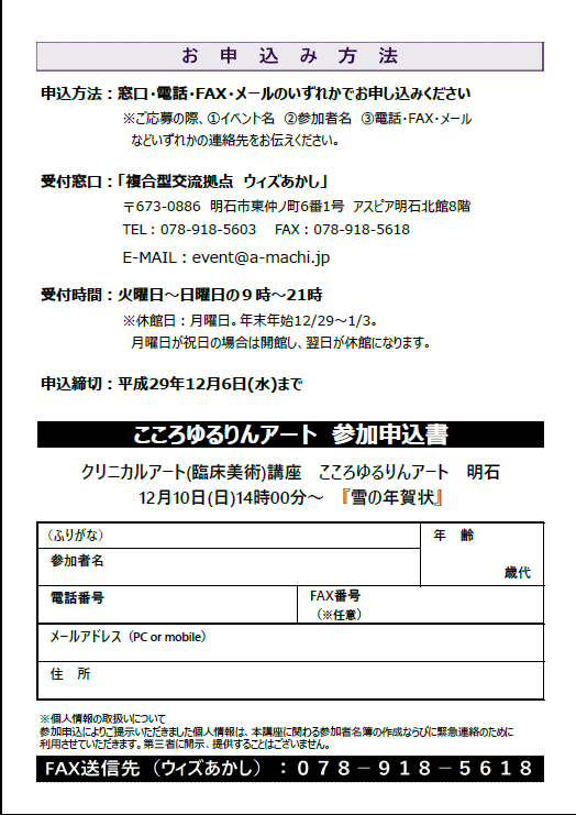 お申し込みは、複合型交流拠点 ウィズあかしへお願いいたします。