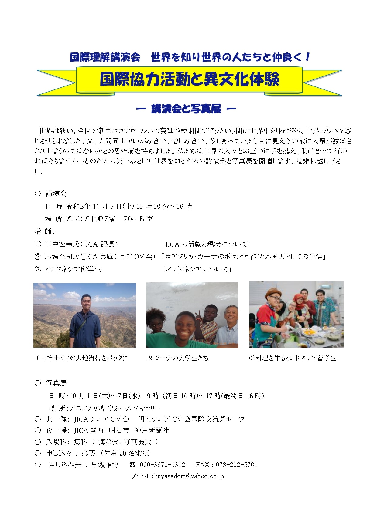 開催日:2020年10月3日(土) 講演会と写真展