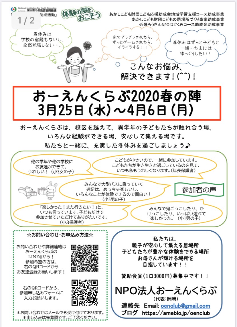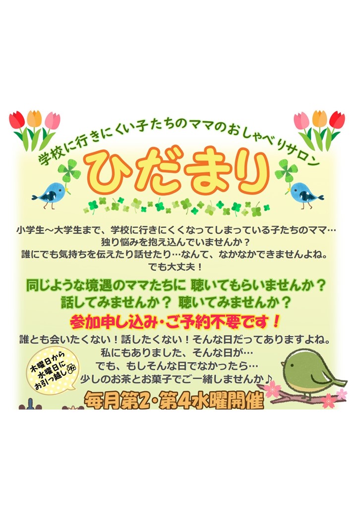 開催日:2020年4月8日(水曜日) 学校に行きにくい子たちのママのおしゃべりサロン ひだまり