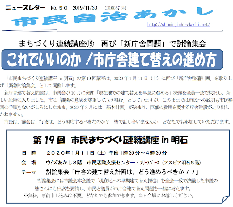 開催日:2020年1月11日(土曜日) 討論集会「庁舎の建て替え計画は、どう進めるべきか!!」