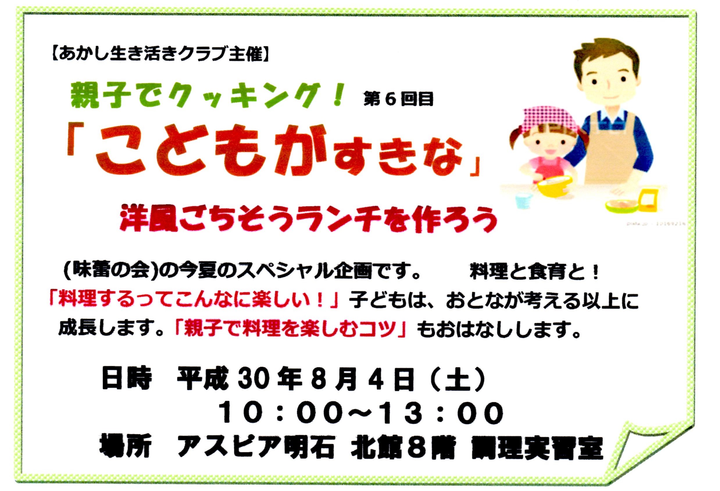 開催日:2018年8月4日(土) 親子でクッキング!