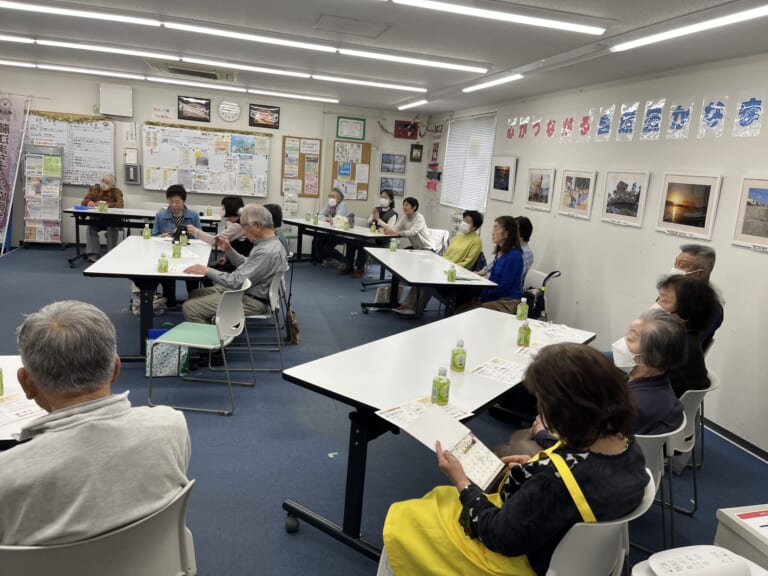 ごみ袋や軍手をもらった参加者は、たすきを掛けた役員さんを先頭に、ごみ拾いに出発しました。