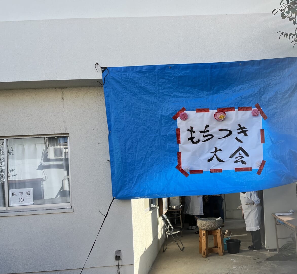 この日、はじめての餅つき大会に挑戦、事前に何度も自動餅つき機で練習し、本番を迎えました。