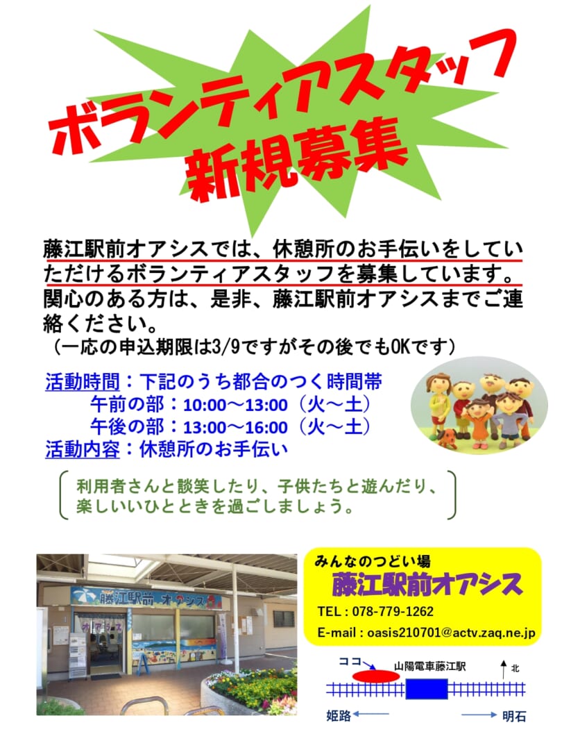 藤江駅前オアシス ボランティアスタッフ募集!!