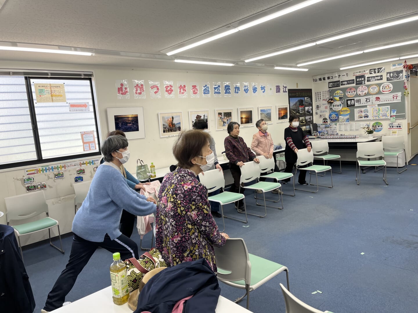 本日の参加者は14名、ビデオを見ながら無理をせずに身体を動かし、誰でも出来るゆるーい感じの健康体操ですが、終わったらじわっと汗を掻く位で適度の心地よさと満足感に浸りながら1時間の体操は終了です。