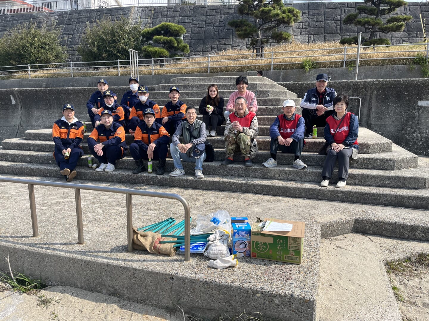 そんな話を聞き付けて、今回は隣の5班から藤江消防団の皆さんの応援を受け、みなさんのやさしさに感謝しながら記念写真をパチリ!!