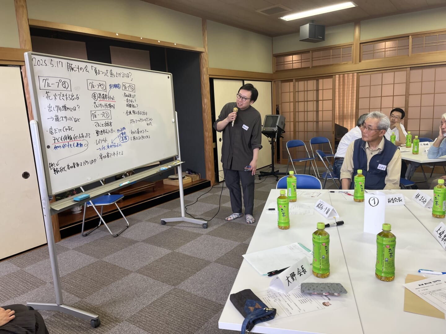 「豚汁の会」とは、色々な野菜と豚肉など具材の味を引き出して、美味しい豚汁ができるように、みんなの味を自由に出し合い、楽しいまち協の行事を企画する会で、今回は、「夏まつり納涼大会」をテーマにしました。