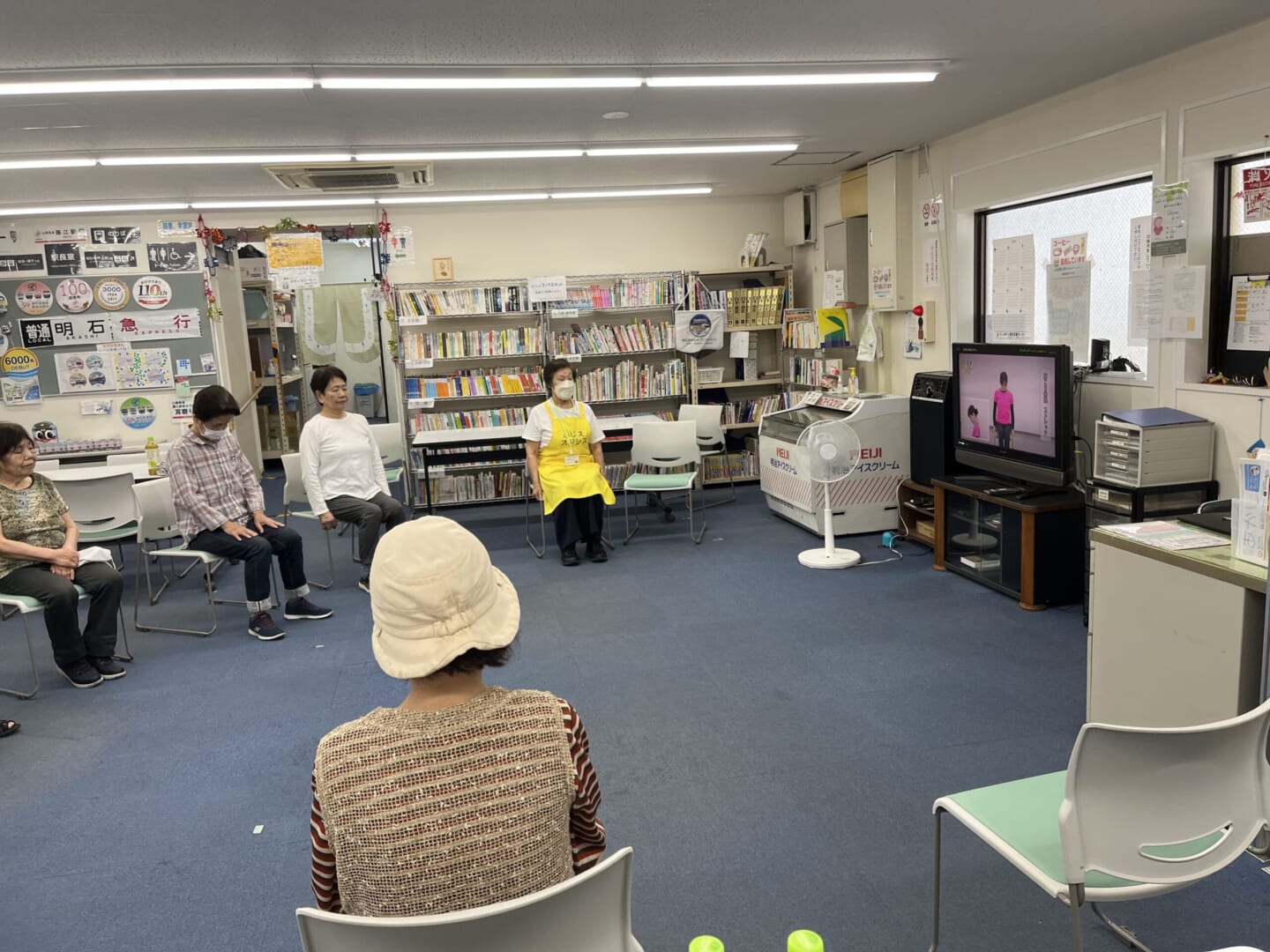 本日の参加者は13名、ビデオを見ながら無理をせずに身体を動かし、誰でも出来るゆるーい感じの健康体操ですが、終わったらじわっと汗を掻く位で適度の心地よさと満足感に浸りながら1時間の体操は終了です。