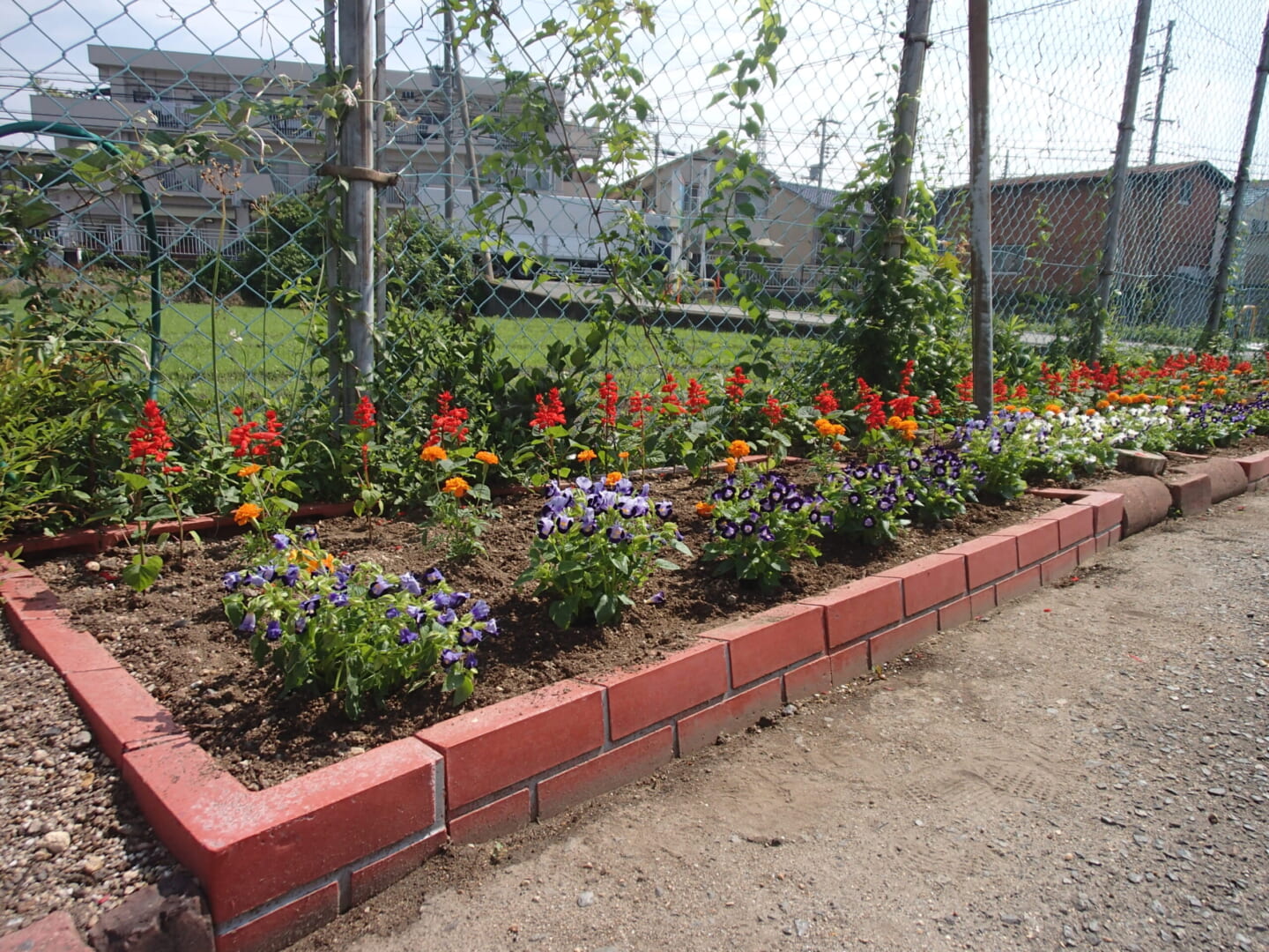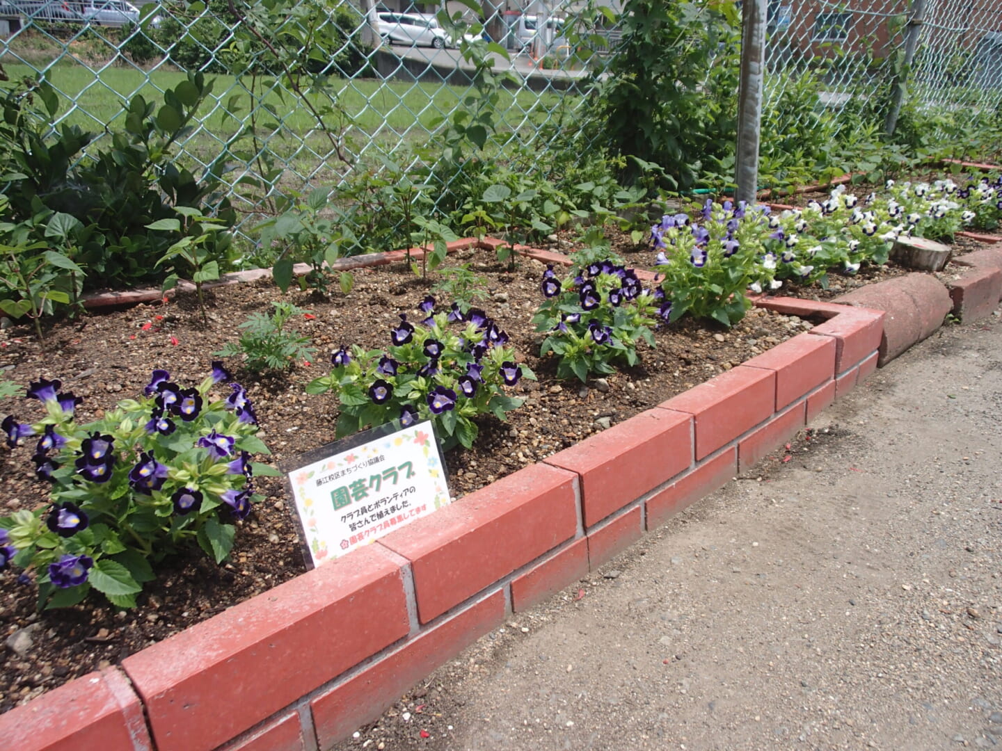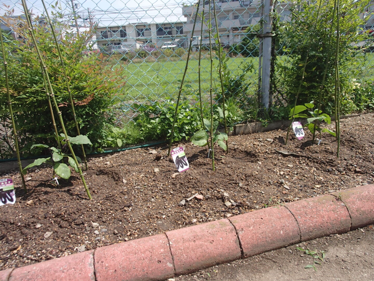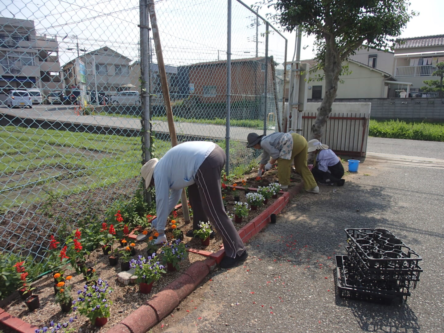 夏のお花(ポーチュラカ、サルビア、マリーゴールド、トレニア)と夏の野菜(トマト、キュウリ、ナス)を園芸クラブ6人で植え付けました。
