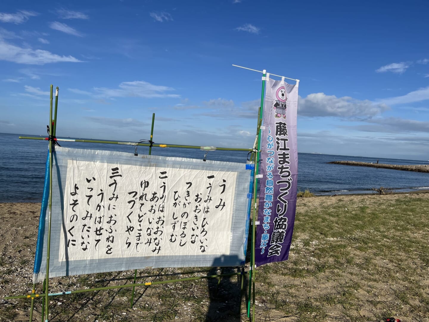 朝6時半、今崎野の浜で「ラジオ体操」の歌がかかり、司会の森岡さんの『おはよう』の挨拶から、みんなで浜に向って「うみ」を歌い、ラジオ体操がはじまります。