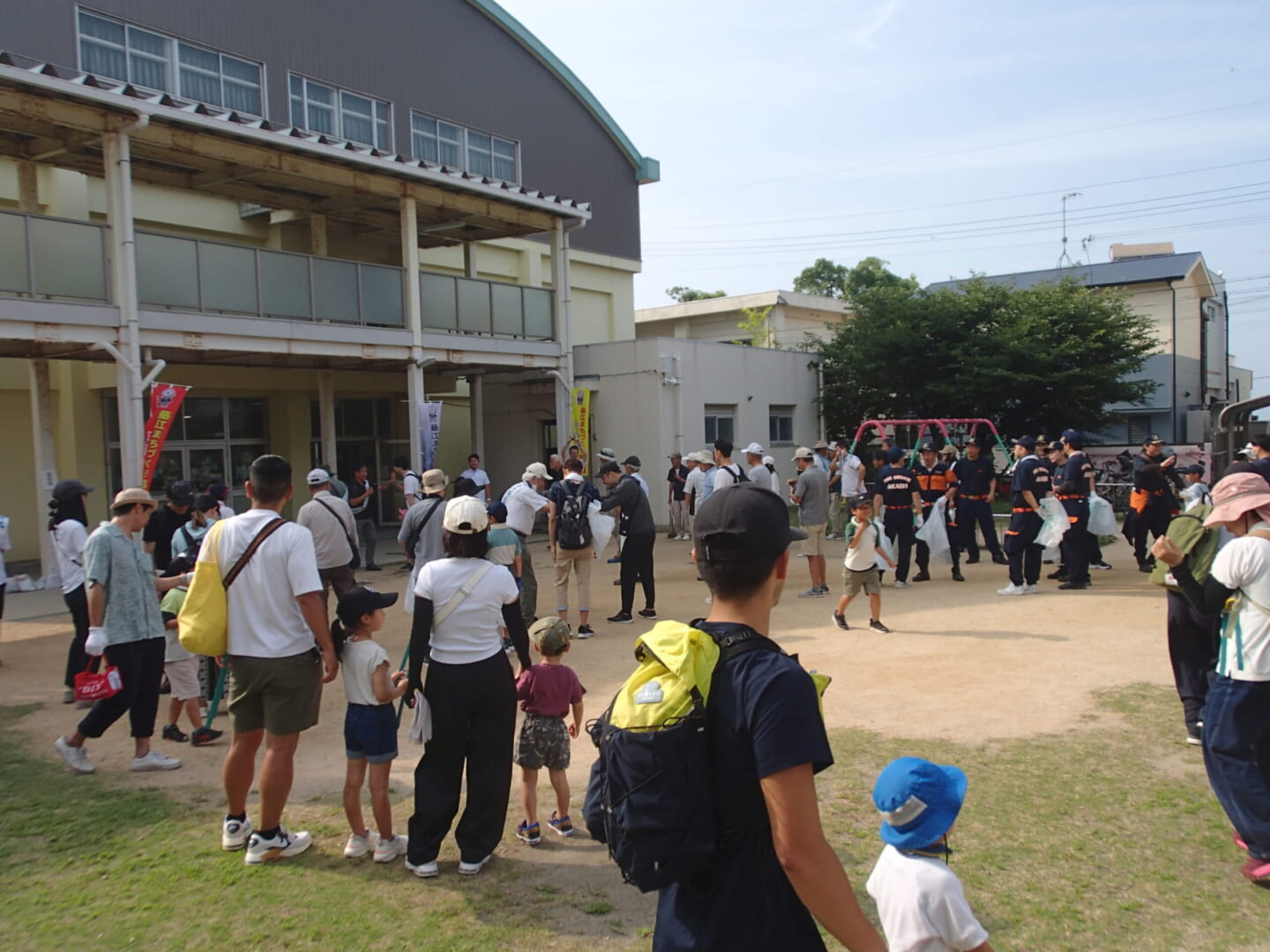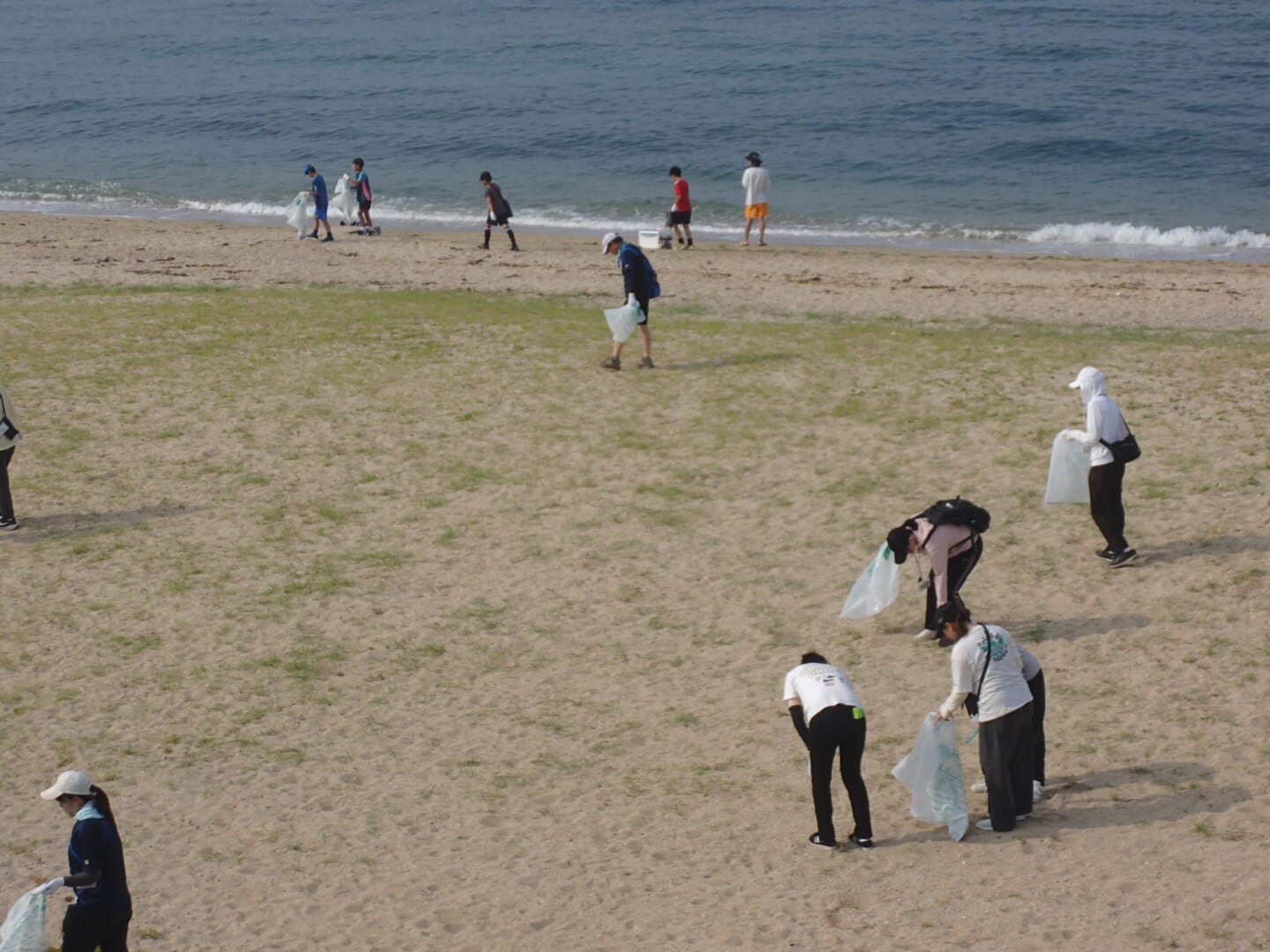 藤江小学校をスタート会場として、A班は会場から浜のゴミ拾いを行い、B班は会場から