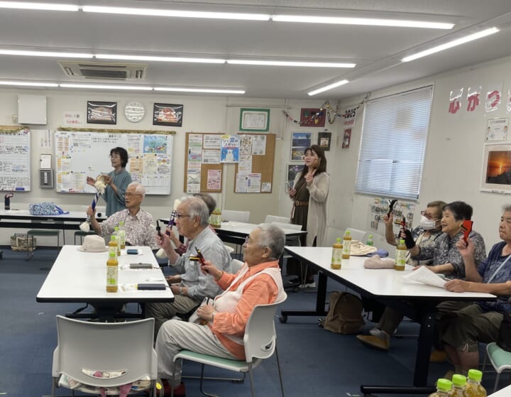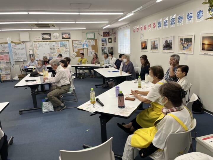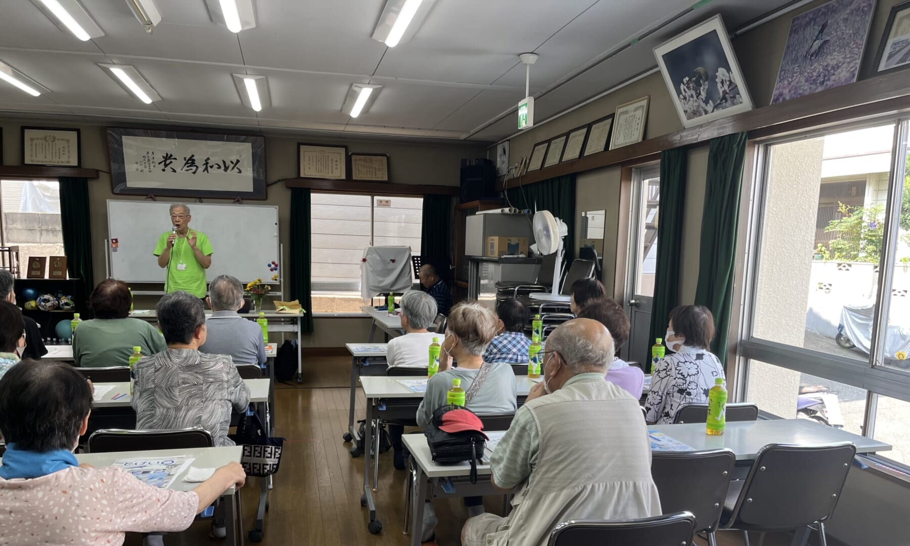 楽しい先生の講義、そしてワイワイ言いながらのフレイルチェック。あっという間の1時間でした。元気でいきいき100歳を目指しましょう。