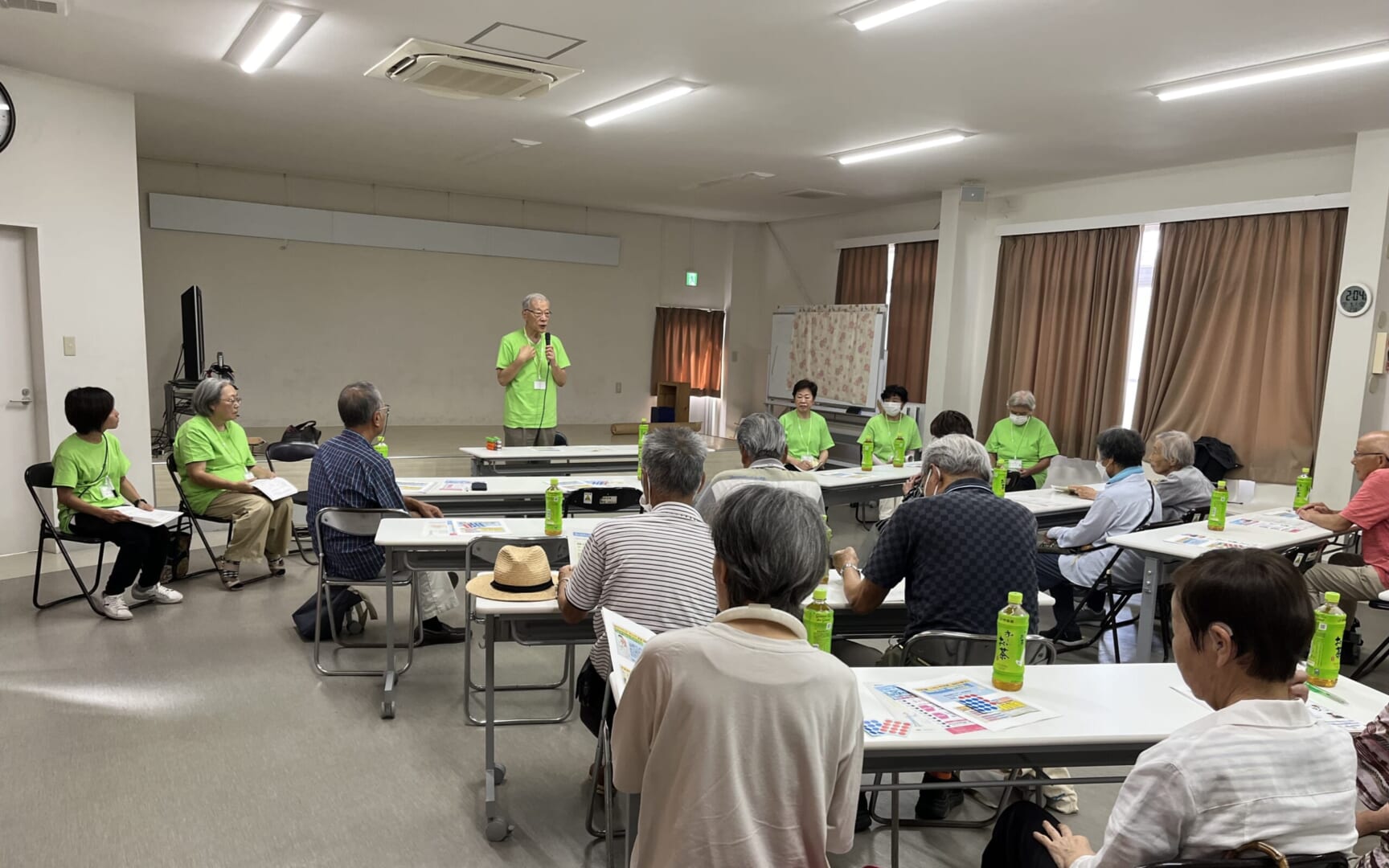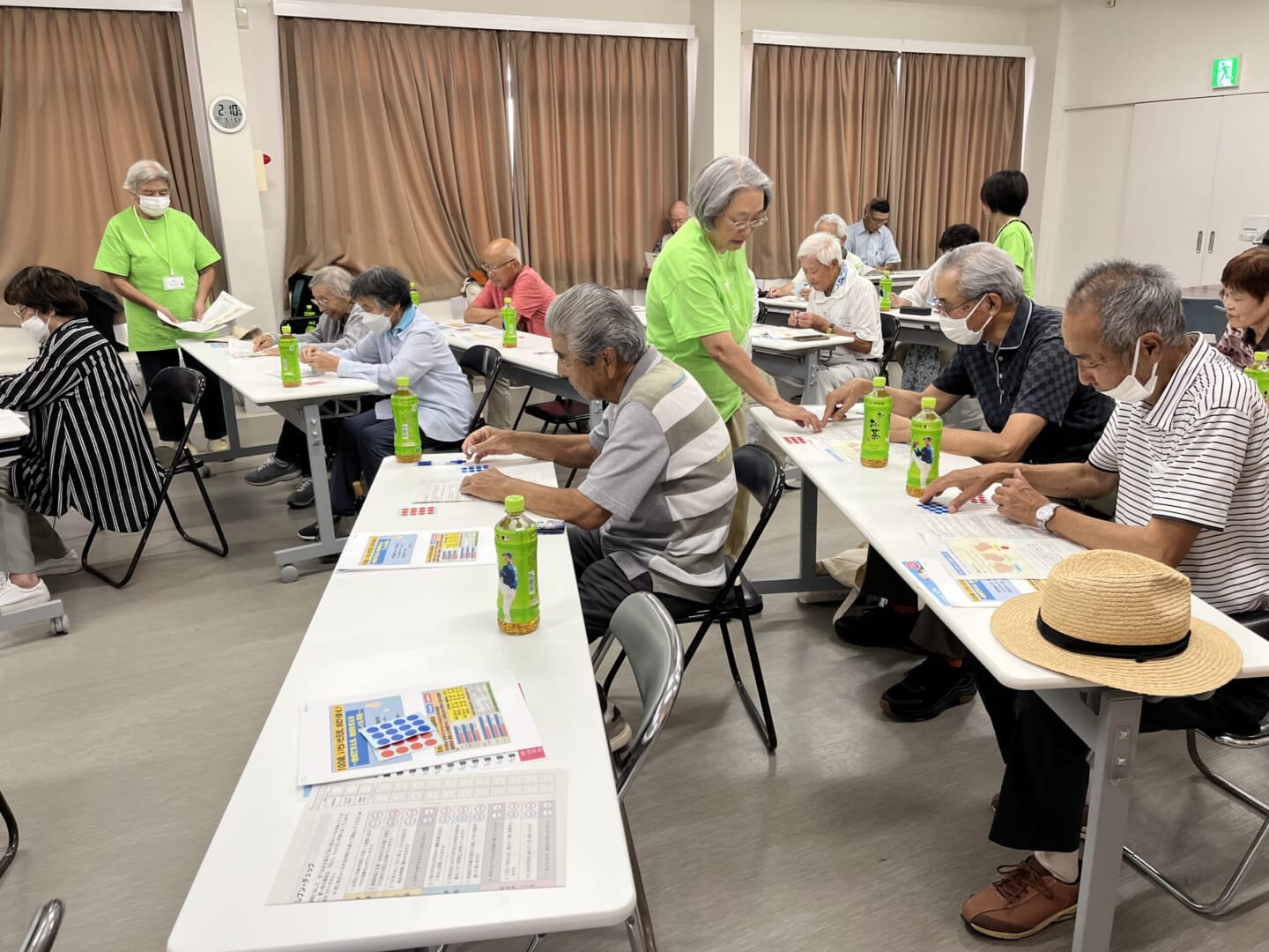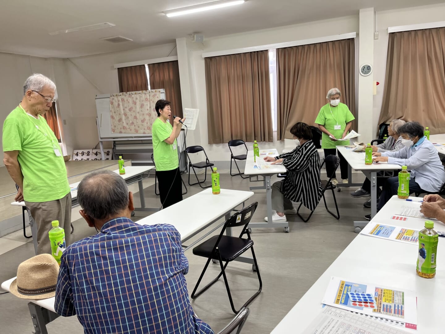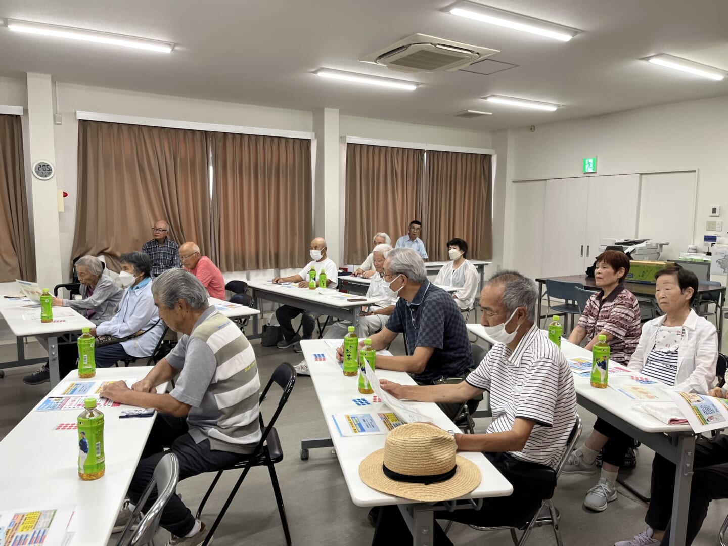 楽しい先生の講義、そしてワイワイ言いながらのフレイルチェック。あっという間の1時間でした。元気でいきいき100歳を目指しましょう。