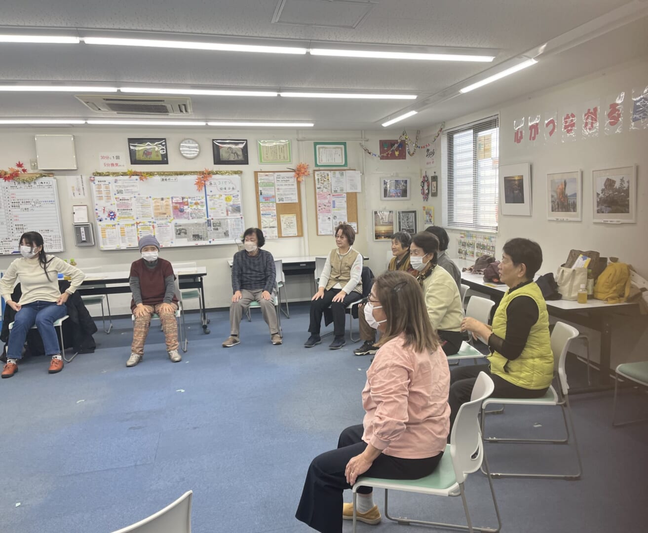 円陣を組んで「健康で100歳あたり前、エイ、エイ、オー」の掛け声も恒例となり、これでお開きです。