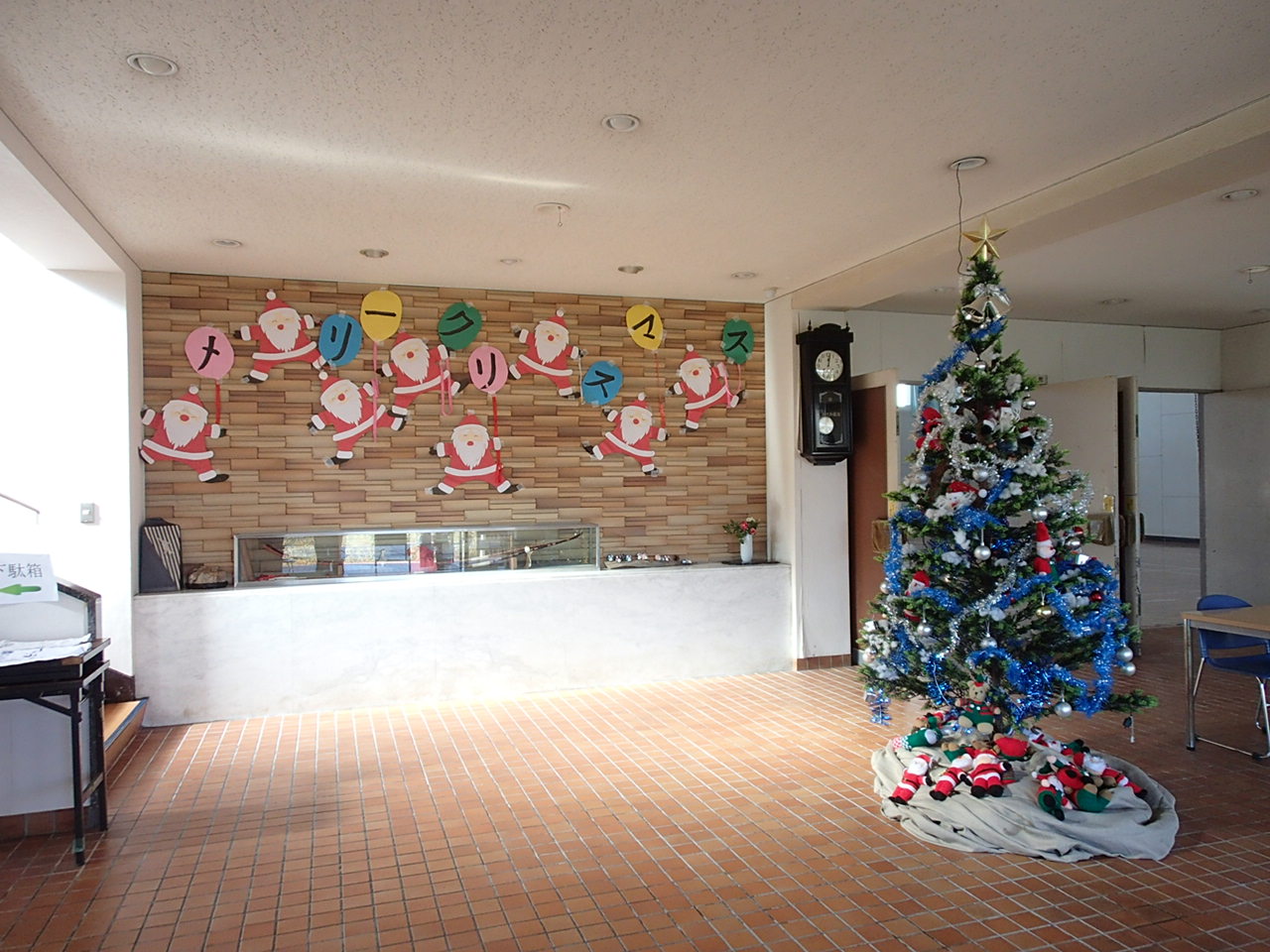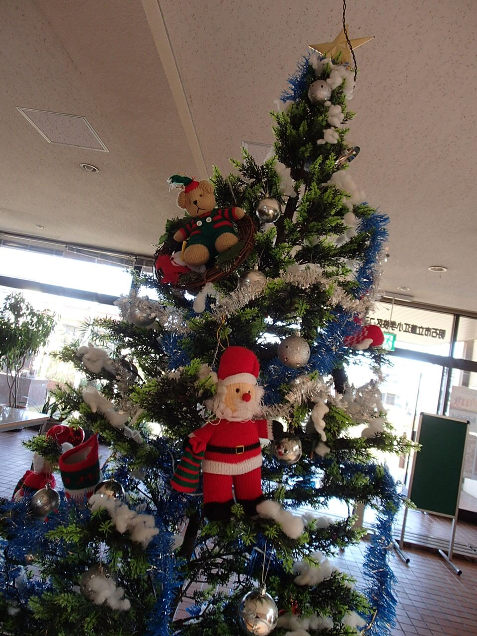 もうすぐクリスマスです。藤江小コミセンのロビーに大きなクリスマスツリーが飾られました。