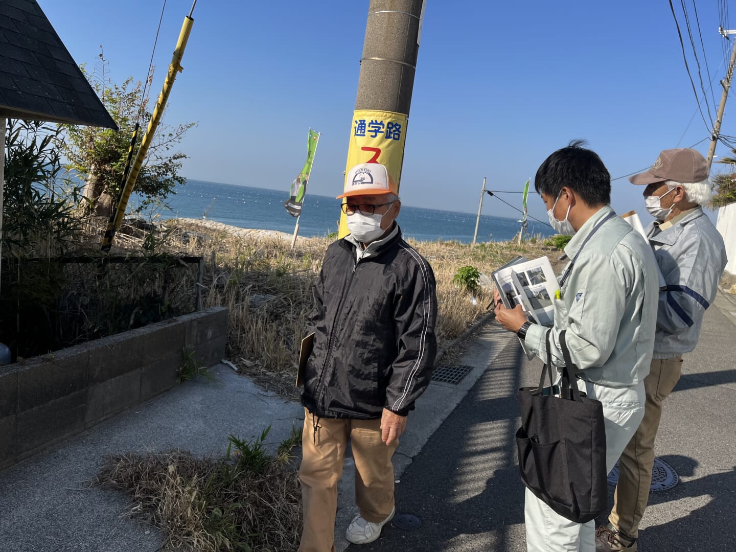 明石警察、明石市、教育委員会のみなさんと共に藤江小学校浜の通学路の内、小学校より東に向って西松江、東松江、林崎までの合同点検に参加しました。