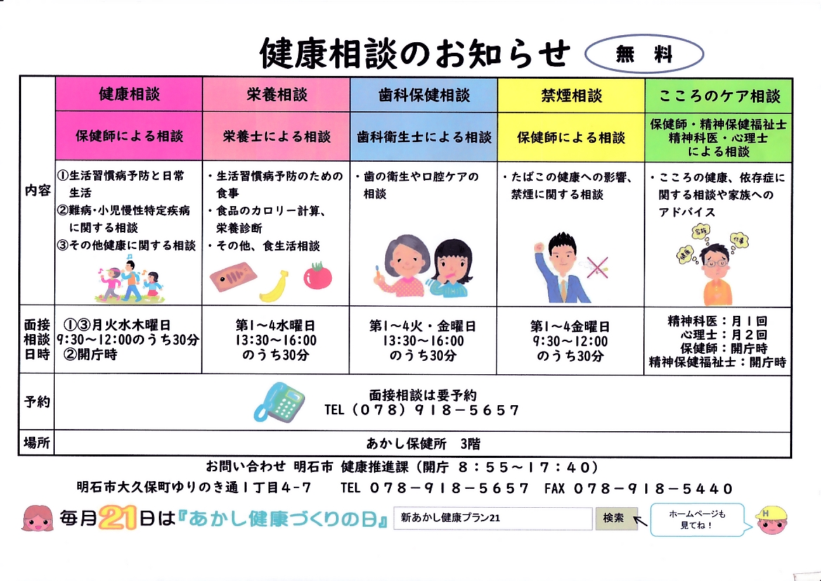 健康相談のお知らせ(明石市健康推進課)