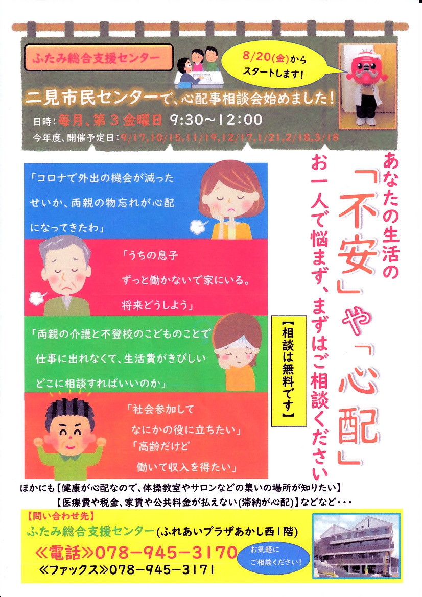 二見市民センターで心配事相談始めました!(二見総合支援センター)
