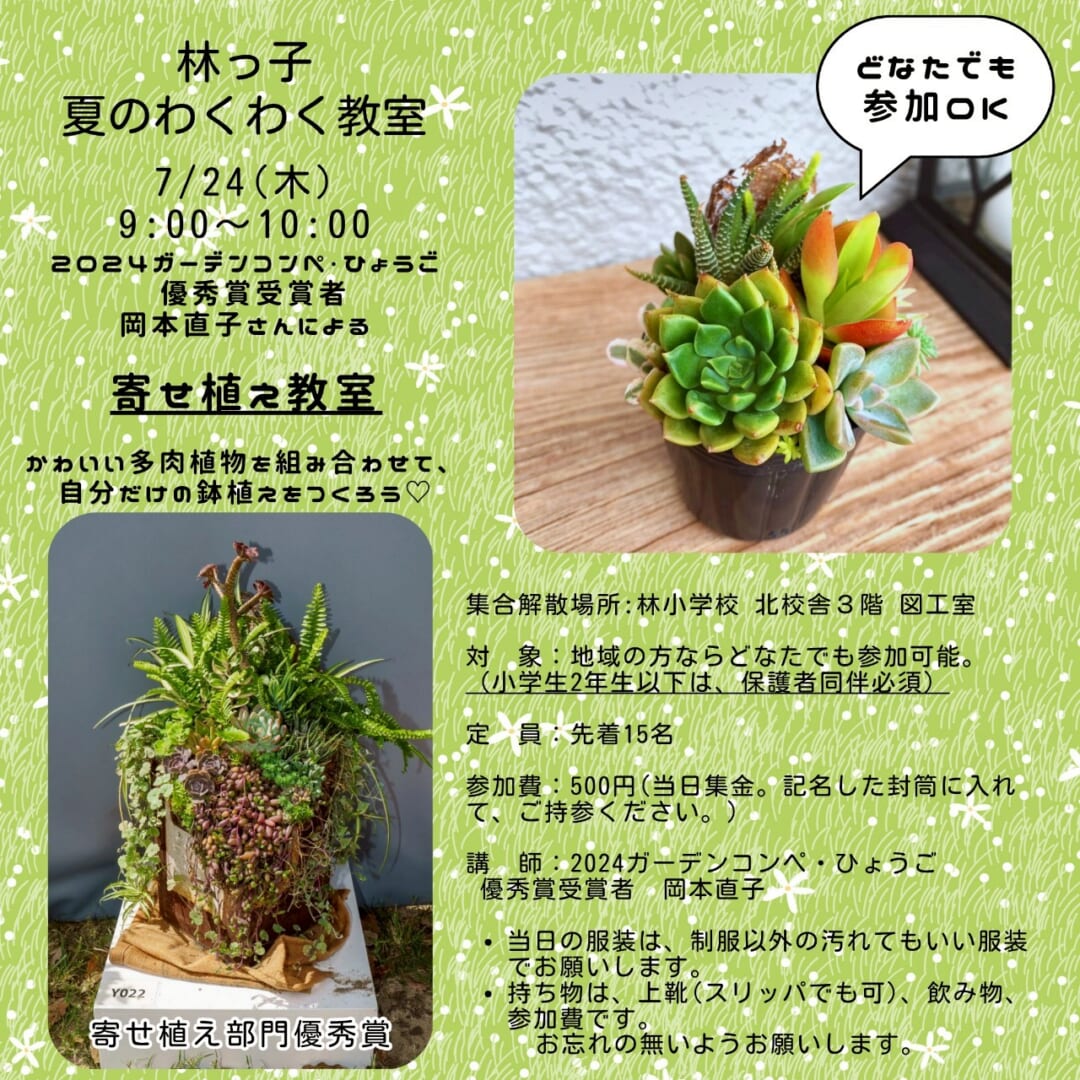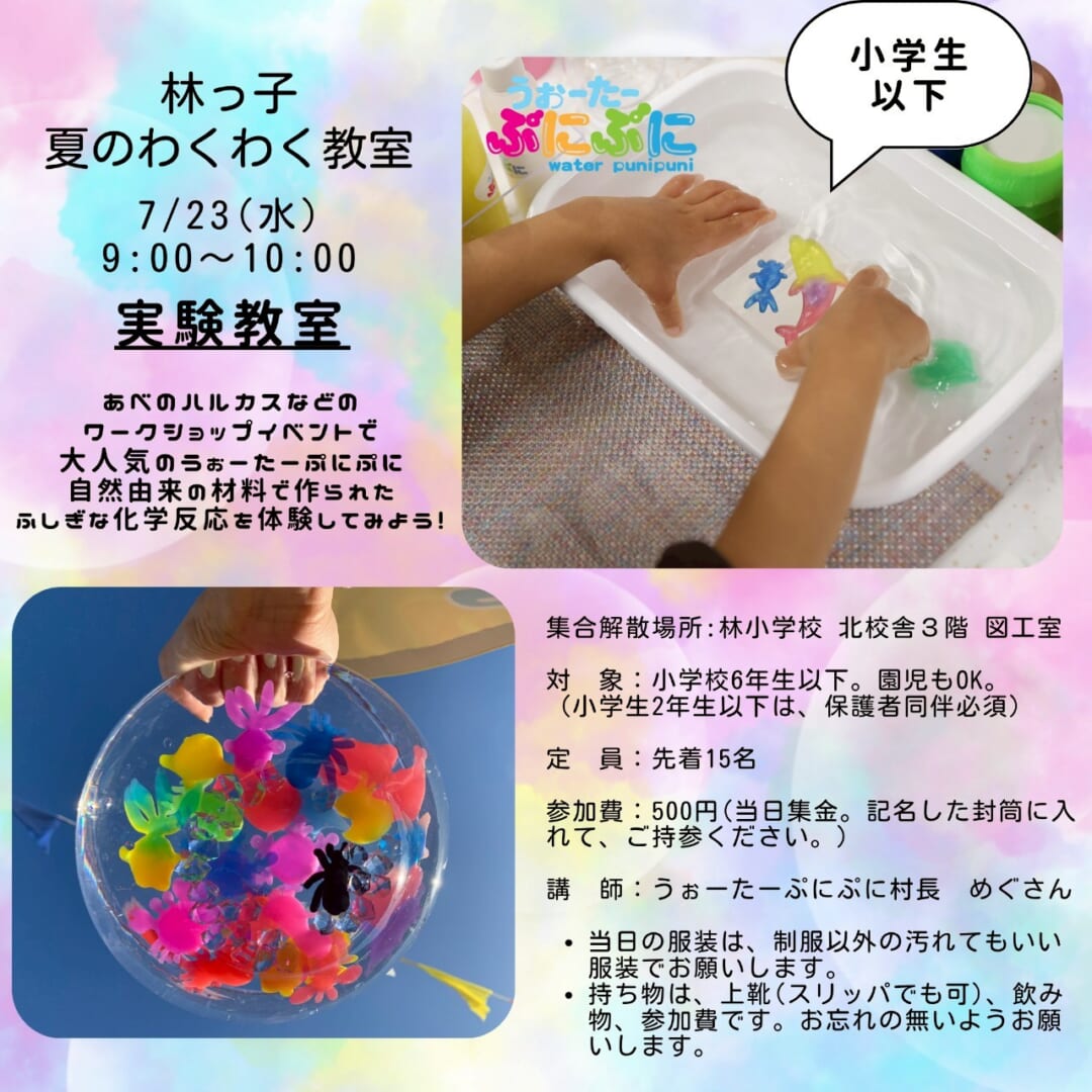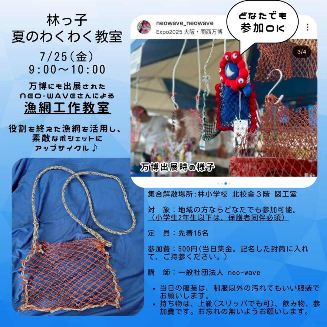 林っ子夏のわくわく教室 投稿日 2025年8月6日 著者 hayashi カテゴリー 林 - 投稿 - LINE 夏休みにはいった7月後半、林小学校にて『林っ子夏のわくわく教室』が実施されました。(主催:はやしふれあいサロン☆)4つの講座は子どもや大人の知的好奇心をくすぐるものばかり。暑い夏のひと時を、子どもも大人も楽しんで受講できました。 はやしふれあいサロン☆ 林校区まちづくり協議会