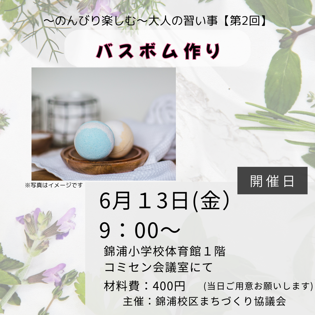 第2回 6/13(金) 9:00~ 【バスボム作り】 材料費400円