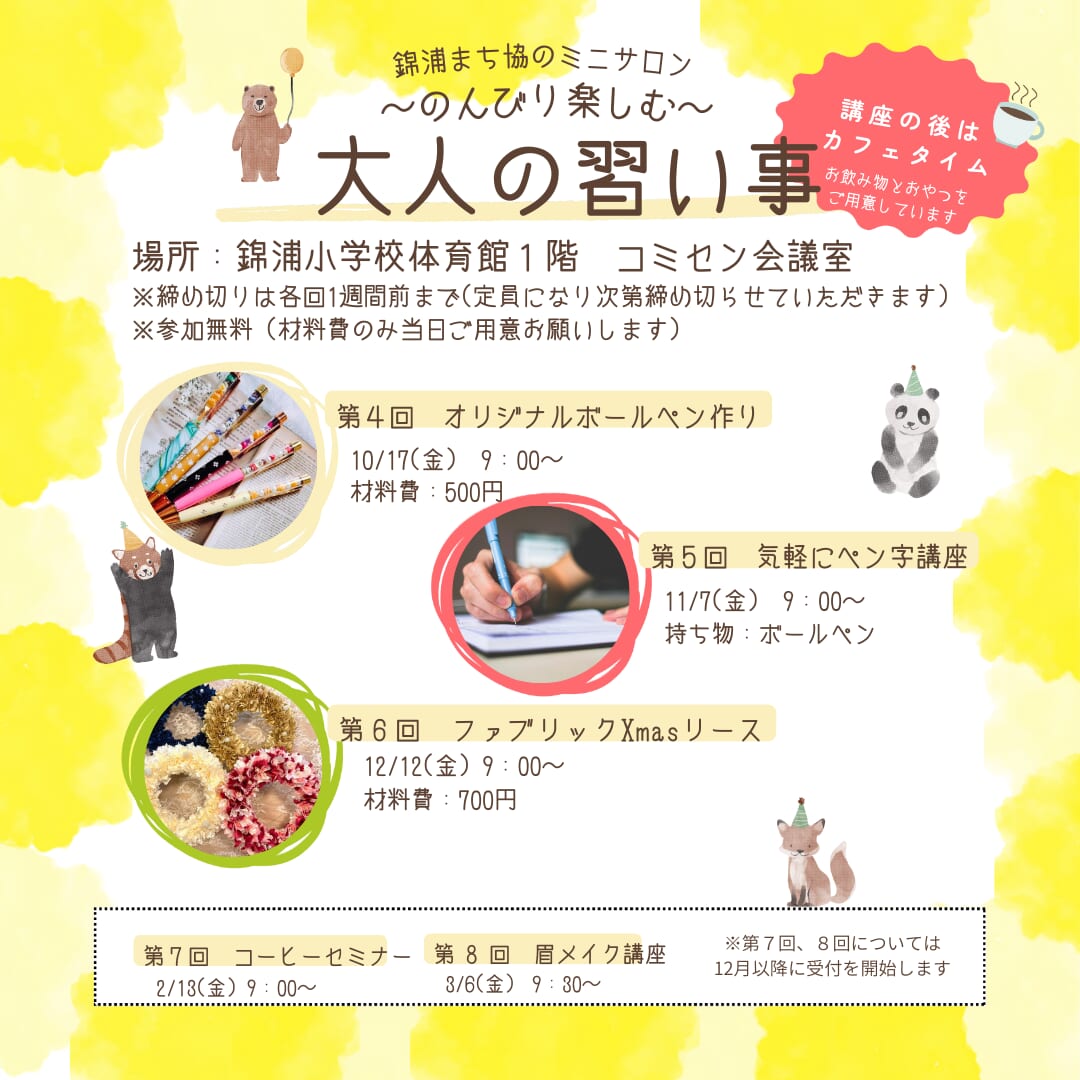【大人の習い事】第4回~第6回の申し込みが始まりました。