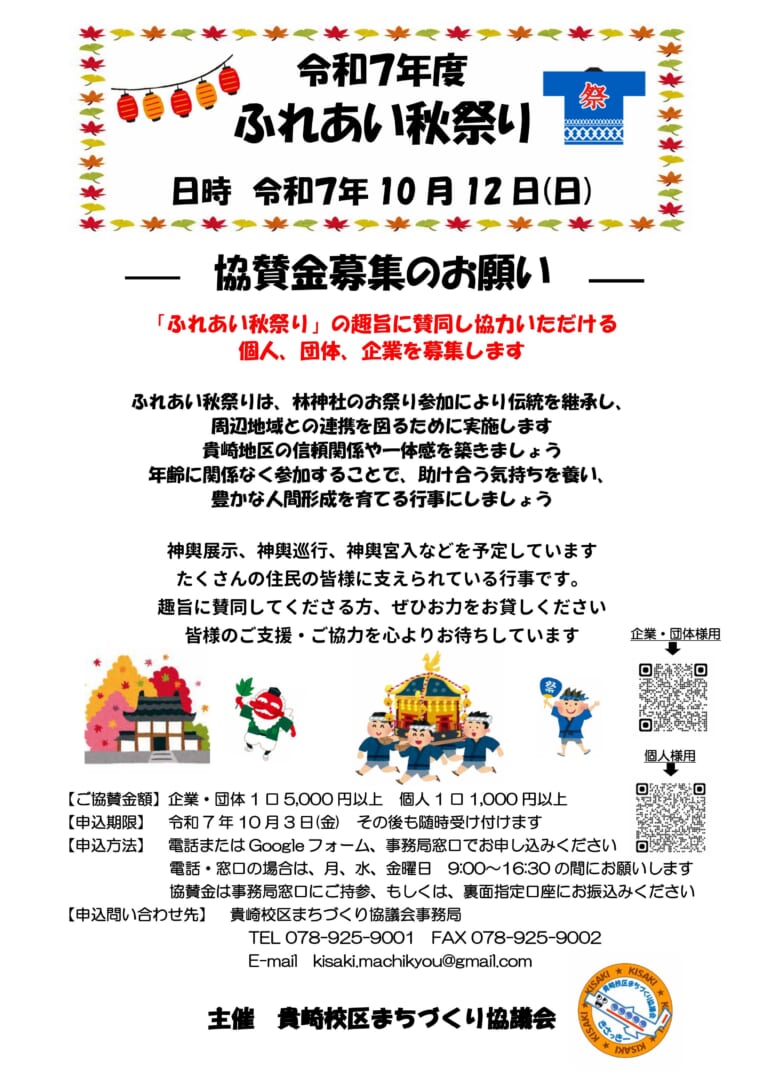 「令和7年度 貴崎ふれあい秋祭り」の趣旨にご賛同のうえ、ご協賛賜りたくお願い申し上げます。