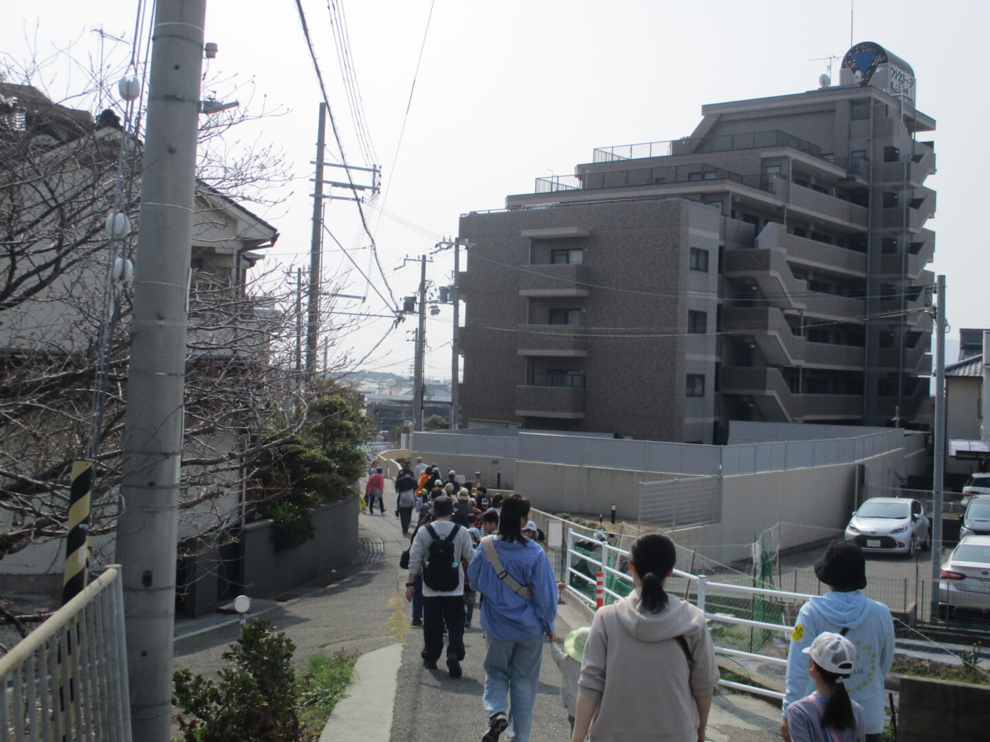 2026年3月29日(日)、今年度最後のふれあい行事「貴崎校区ふれあいハイキング」を開催しました。当日は、歩いていると汗ばむほどの暖かなハイキング日和となり、一般参加者・スタッフ合わせて約100名が参加しました。春の訪れを感じながら、楽しい一日を過ごすことができました。